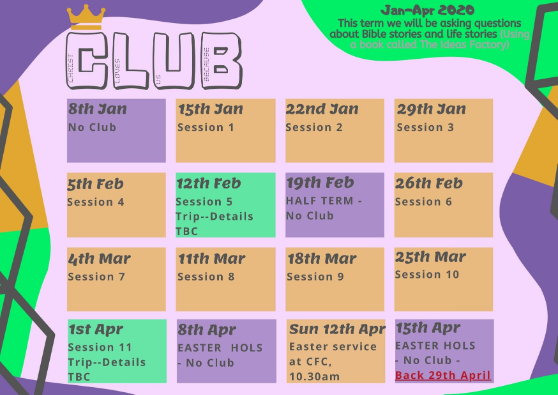 Come and join us for a packed and lively session, filled with games, crafts, trips and lessons from the Bible - we'd love to see you!